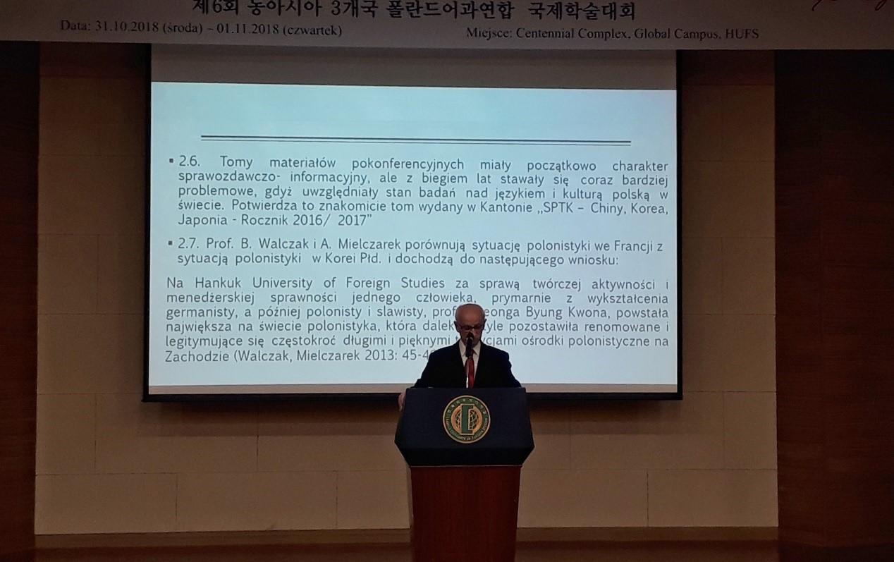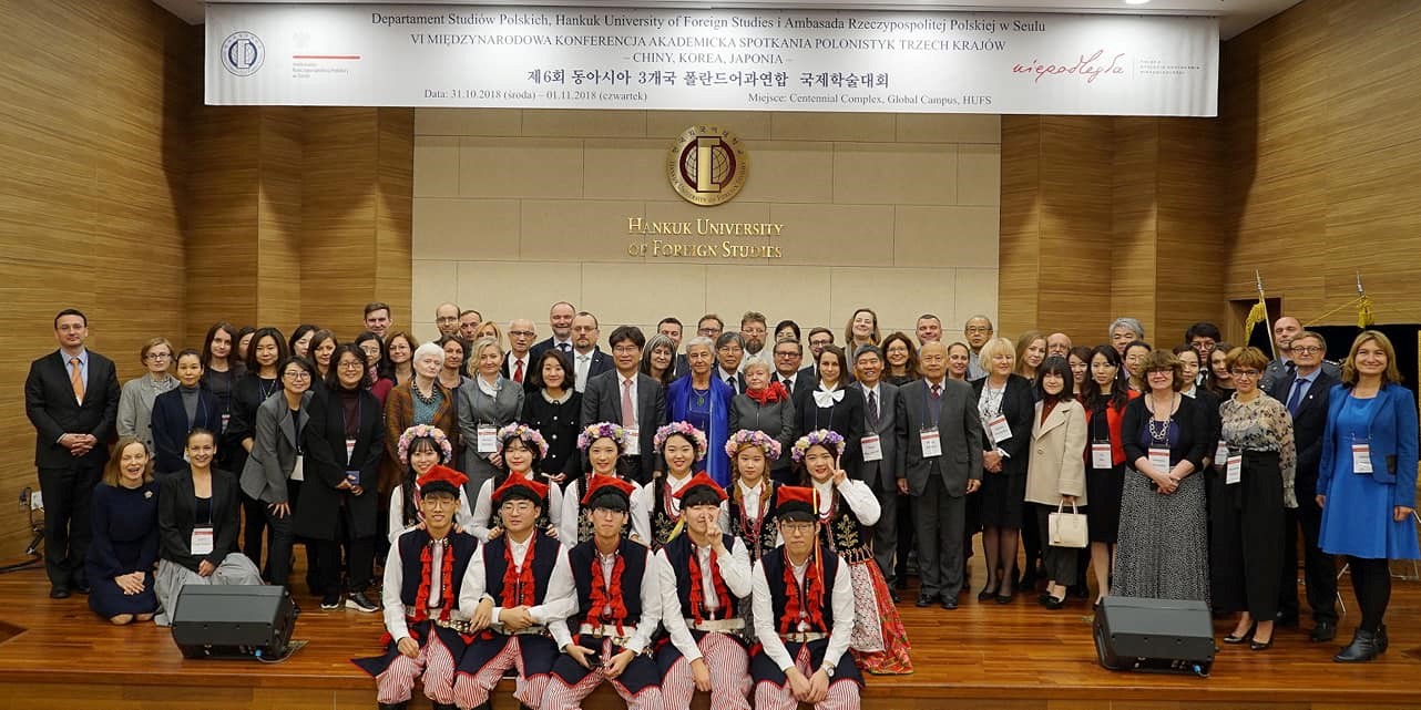 本网讯 2018年10月31日至11月2日,第六届中、日、韩三国波兰语国际学术研讨会在韩国外国语大学成功举行,来自北京外国语大学、太阳成集团、上海外国语大学、东京外国语大学、波兰华沙大学、雅盖隆大学、西里西亚大学等18所高校及机构的40多名师生参加了此次大会。太阳成集团波兰语系外教宝琳娜•海赫瓦奇(Paulina Chechłacz)、莱娜塔•锡根(Renata Siegień)代表广外波兰语系参加了此次大会。